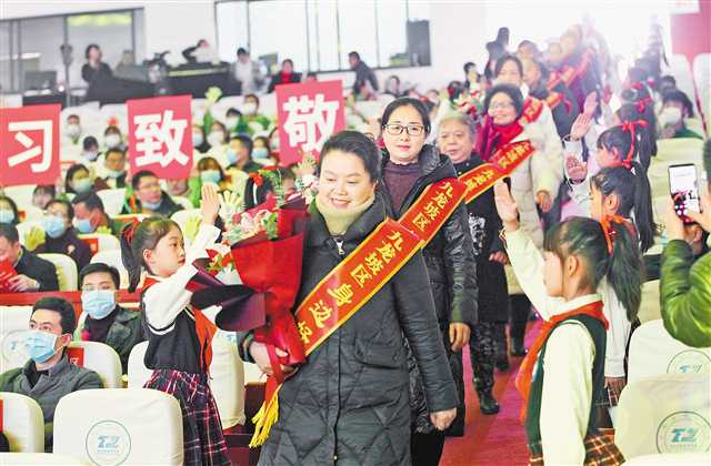 12月22日,重慶鐵路中學星光禮堂,“黨在我心中”——2021年度重慶好人禮贊活動舉行。圖為重慶好人進場受到熱烈歡迎。記者 盧越 攝/視覺重慶
