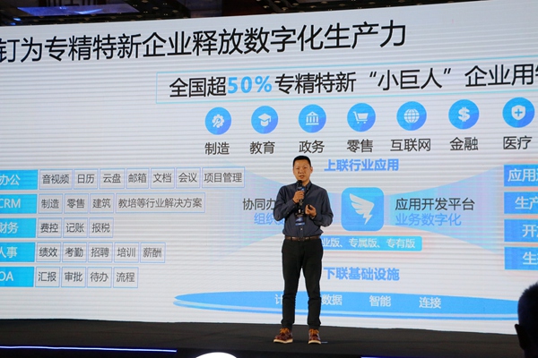 釘釘解決方案總經(jīng)理邱達(dá)就釘釘專精特新數(shù)字化解決方案展開演講。張艷攝