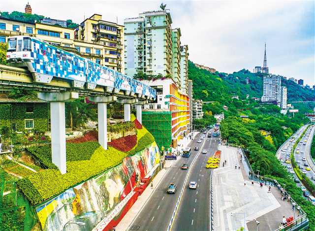 立體綠化改造后的渝中區(qū)李子壩軌道站。(資料圖片)記者 龍帆 攝\視覺重慶