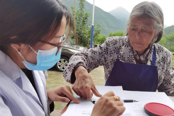 醫(yī)務(wù)人員入戶進(jìn)行家庭醫(yī)生簽約服務(wù)。(資料圖)仙女鎮(zhèn)衛(wèi)生院供圖