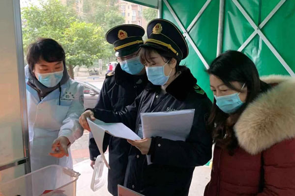 衛(wèi)生監(jiān)督員實地查看疫情防控措施。(資料圖)李佳蔚攝