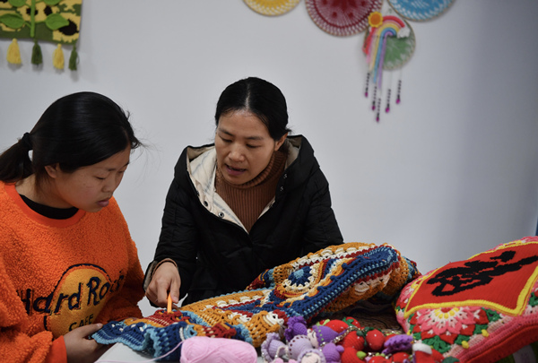 巧手夢(mèng)工坊居民學(xué)習(xí)手工藝制品制作。周邦靜攝