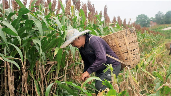 收割高粱的當?shù)卮迕瘛V靹潘蓴z