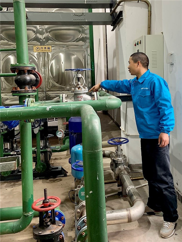 劉義彬現(xiàn)在是江小白酒廠特種設(shè)備員,負責(zé)管理鍋爐生產(chǎn)車間,這里相當于整個酒廠的“心臟”。每天,在這里生產(chǎn)的蒸汽通過密集的管道網(wǎng)絡(luò)輸送至各個釀造車間一線,為釀酒設(shè)備提供熱能。