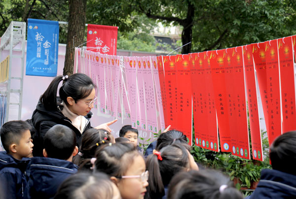 “金沙嘉陵才分清,打四字重慶區(qū)名!12月30日,在金山小學(xué)棲霞路校區(qū)至善廣場(chǎng)上舉行的教育集團(tuán)辦學(xué)10周年成果展猜燈謎的現(xiàn)場(chǎng),洋溢著濃濃的節(jié)日氣氛,已然是一片歡樂的海洋。