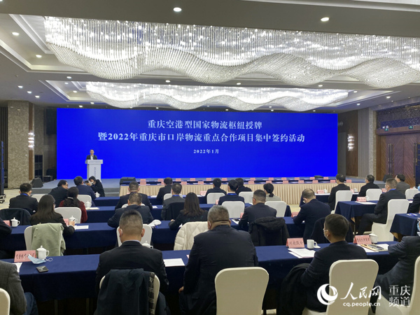 人民網(wǎng)重慶1月4日電 (劉政寧)1月4日,重慶空港型國家物流樞紐授牌暨2022年重慶市口岸物流重點合作項目集中簽約活動在霧都賓館舉行。