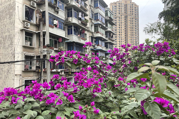 啥事讓居民們這么高興?原來是2021年整改、綠化后的坡坎上有了新風(fēng)景:一株株紫色的花朵迎風(fēng)舒展,讓老小區(qū)綻放出新“笑顏”。