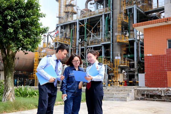 重慶市涪陵區(qū)稅務(wù)局工作人員到重慶建峰化工股份有限公司宣傳資源稅、環(huán)保稅相關(guān)政策。吳楠攝