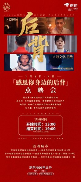 據(jù)了解,《后背》是京東電器打造的賀歲大片,此次點(diǎn)映活動同時(shí)也將在京東電器超級體驗(yàn)店合肥店(以下簡稱“京東超體合肥店”)、京東電器城市旗艦店南京店舉行?,F(xiàn)場還會推出故事展覽、書寫感謝卡片互動、個(gè)性化打卡墻拍專屬電影海報(bào)等活動。