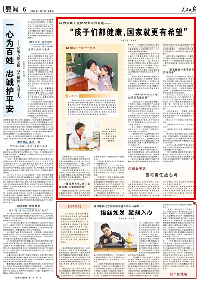 見(jiàn)到鄭惠連,會(huì)感受到“朝氣”。她說(shuō),這是因?yàn)殚L(zhǎng)期和孩子們?cè)谝黄。告別上海,西遷重慶,扎根山城66年,鄭惠連有使不完的勁兒。她用醫(yī)者仁心,在患者心里種下希望;貓(bào)她的,是孩子們快樂(lè)的笑臉,是家長(zhǎng)感激的眼神,是大家愛(ài)心的傳遞……
