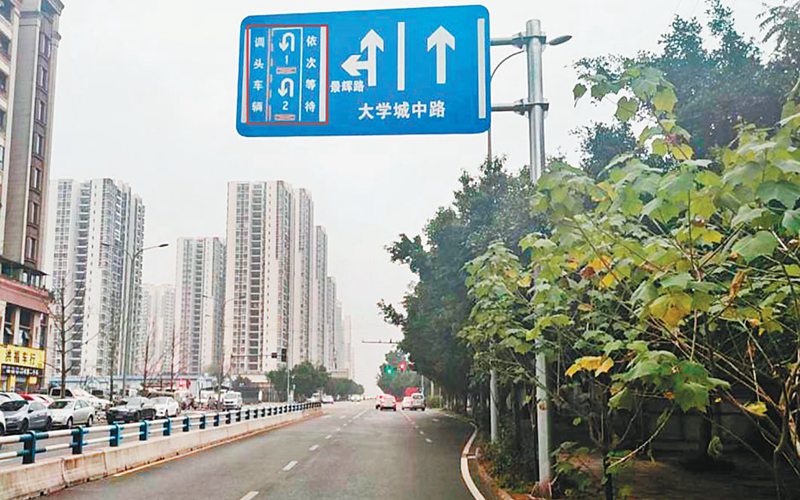 在大學(xué)城盛德路景輝路路口,已標(biāo)注出串聯(lián)掉頭標(biāo)志。(沙坪壩區(qū)公安分局供圖)