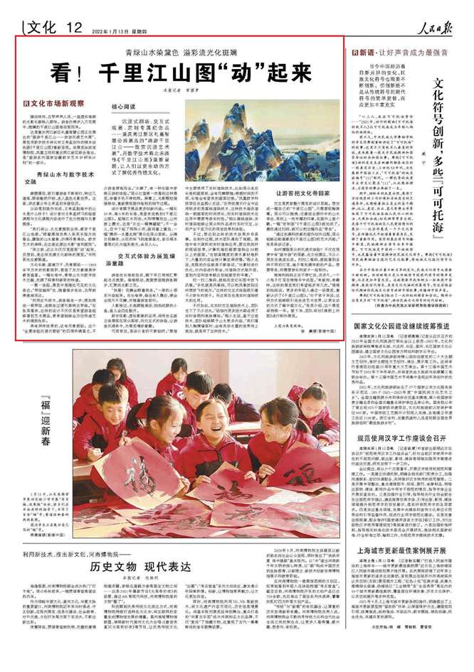 沉浸式劇場、交互式觀展、定制專屬紀(jì)念品……重慶兩江新區(qū)禮嘉智慧公園展出的“畫游千里江山——故宮沉浸藝術(shù)展”,用數(shù)字技術(shù)將北宋畫作《千里江山圖》重新呈現(xiàn),讓人們以更生動的方式了解優(yōu)秀傳統(tǒng)文化。