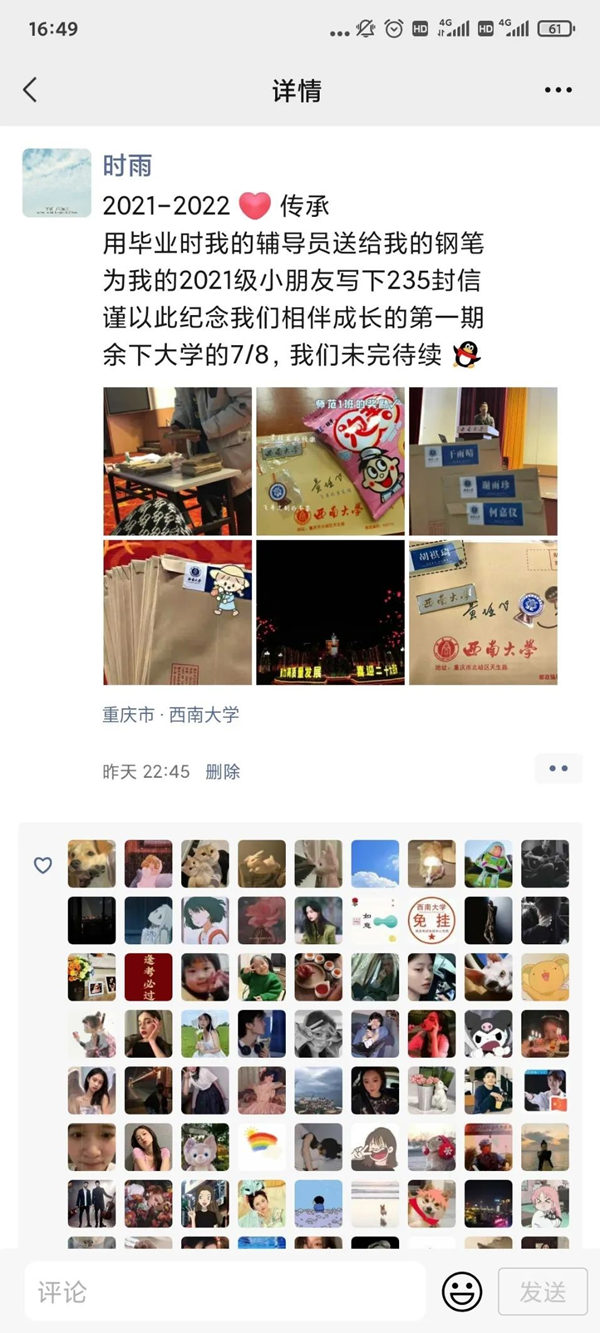 學(xué)生收到輔導(dǎo)員親筆信。西南大學(xué)供圖