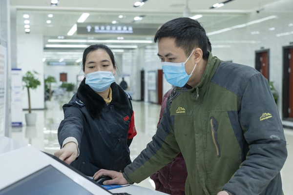 1月15日上午,渝北區(qū)行政服務中心自助辦稅區(qū),稅務人員輔導市民月先生登錄電子稅務局辦理代開發(fā)票業(yè)務。郭睿攝