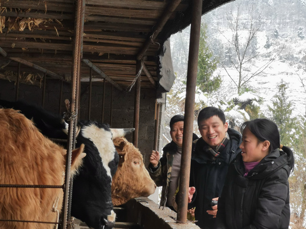 游斌杰查看農(nóng)戶養(yǎng)牛情況。余明芳攝