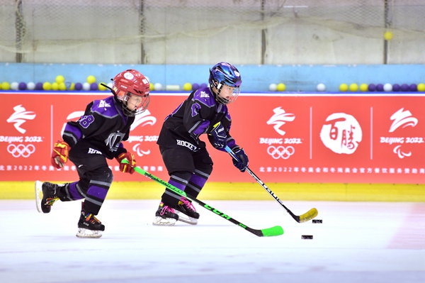 賽后,在教練劉宏勛的帶領(lǐng)下,王子冰球隊(duì)的其他教練和隊(duì)員們一起為北京冬奧加油。