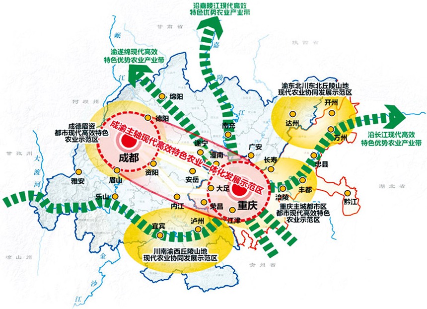 成渝現(xiàn)代高效特色農(nóng)業(yè)帶空間布局示意圖