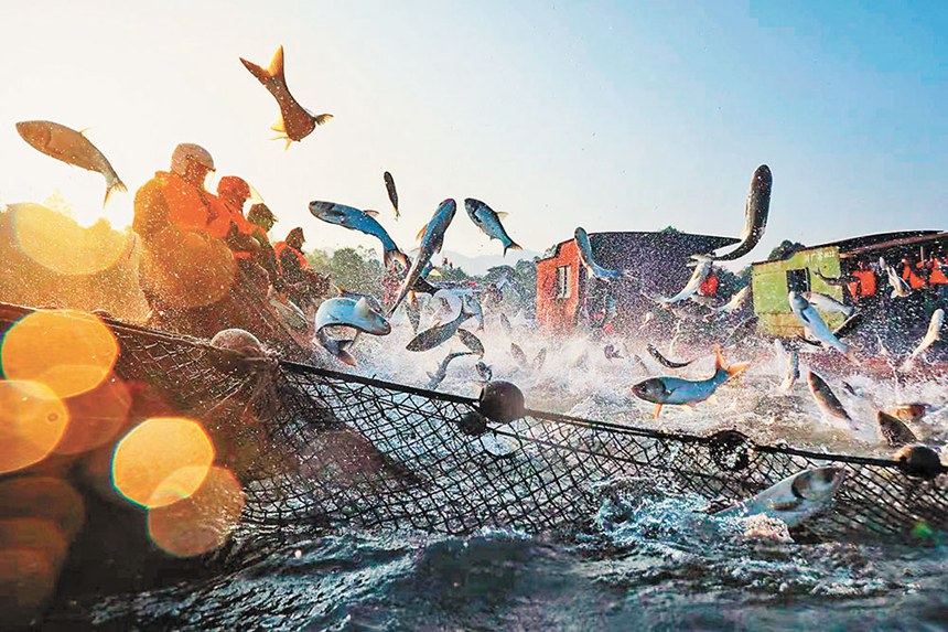 2021年10月24日,長壽區(qū)長壽湖,大洪湖水產(chǎn)公司的工人正在捕魚。通訊員 樊強(qiáng) 攝/視覺重慶