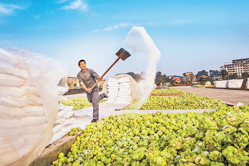 涪陵區(qū)江北街道二渡村村民處理收獲的青菜頭。(資料圖片)張政 攝/視覺重慶