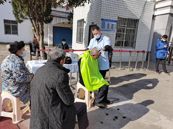 志愿者為老人們提供清潔服務(wù)。馬安巧攝