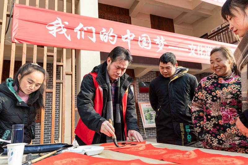 寫春聯(lián)送祝福。胡序和攝