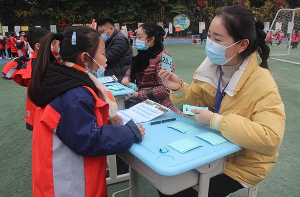 為切實減輕學(xué)生課業(yè)負擔,江津區(qū)探索小學(xué)一二年級學(xué)業(yè)評價改革,部分學(xué)校將原來的“紙筆測試”調(diào)整為“游園會”形式,將各學(xué)科要求達成的核心素養(yǎng)融入到真實情境和游戲活動中,真實呈現(xiàn)學(xué)生發(fā)現(xiàn)問題、解決問題、提出問題的能力。