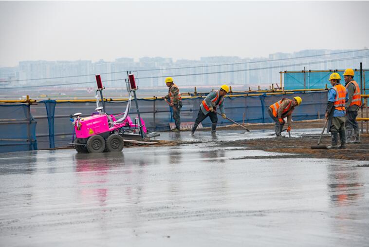 “傳統(tǒng)人工整平需要大量人力,引入地面整平機(jī)器人后,施工效率每小時(shí)比傳統(tǒng)人工整平提高一倍左右!盝指廊工區(qū)負(fù)責(zé)人張愛(ài)均介紹,機(jī)器人采用了激光控制和測(cè)量系統(tǒng),工作精度和效率遠(yuǎn)高于人工整平。