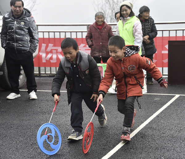 人民網重慶1月22日電 1月21日,時值寒冬,冷風吹過山谷,但是涪陵區(qū)江東街道磨溪村的這群孩子卻感到十分溫暖。原來,由涪陵區(qū)民政局和江東街道辦事處主辦,尚善社工承辦的迎新年趣味運動會在磨溪村舉行。孩子們帶著“闖關卡”開始了“猜燈謎”、“滾鐵環(huán)”、“歡樂跳跳跳”、“滾滾樂”等精彩的互動游戲。