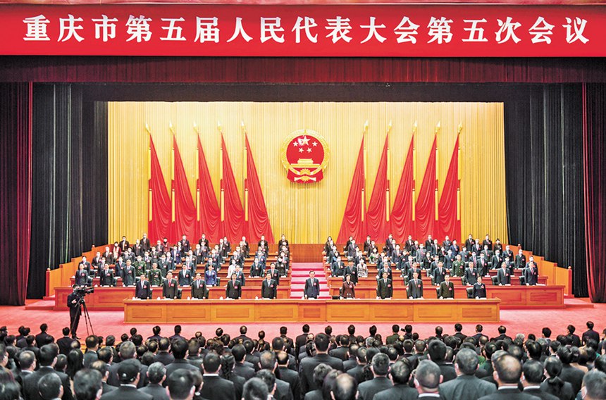 一月二十一日,重慶市人民大廈禮堂,市五屆人大五次會(huì)議在莊嚴(yán)的國(guó)歌聲中閉幕。記者 齊嵐森 攝\視覺(jué)重慶