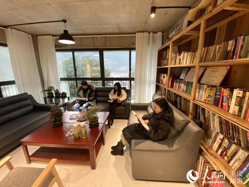 民宿內(nèi)的書吧備受住客的青睞。人民網(wǎng) 劉政寧攝
