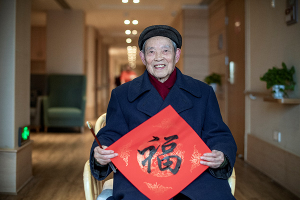 在五樓的公共活動(dòng)間,84歲的耿遠(yuǎn),凝神靜氣,揮毫潑墨,一會(huì)便了好幾幅春聯(lián)和福字。耿爺爺思維清晰很健談,來椿山萬樹頤年公寓前,一直由保姆在家照顧?!霸诩液驮谶@里,各有各的好,在家時(shí)唯獨(dú)不能忍受,一個(gè)人太孤單。”來到這里后,天天有集體活動(dòng)可以參加,有人吹龍門陣,一日三餐也合胃口,耿爺爺感覺自己開朗了許多。