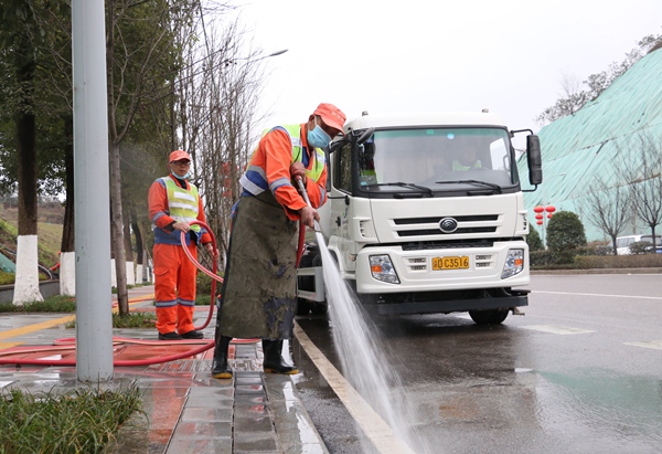 重慶經(jīng)開區(qū)建設(shè)服務(wù)中心600余名環(huán)衛(wèi)工人堅(jiān)守一線開展衛(wèi)生環(huán)境大掃除。重慶經(jīng)開區(qū)建設(shè)服務(wù)中心供圖