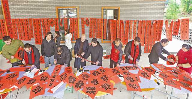 江津區(qū)先鋒鎮(zhèn)保坪村,書法家為村民書寫春聯(lián)。