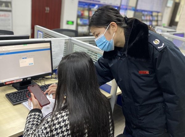 2月7日,重慶市黔江區(qū)辦稅服務(wù)廳工作人員輔導(dǎo)市民通過線上渠道辦理稅費(fèi)業(yè)務(wù)。 陳瑤攝