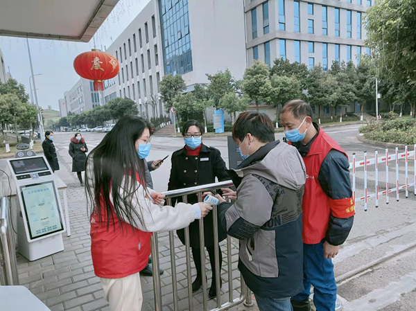 人民網(wǎng)重慶2月11日電 “你好,請(qǐng)問(wèn)你們是從哪里返回重慶的?”“你好,請(qǐng)出示一下你們的渝康碼、行程碼和場(chǎng)所碼。”2月10日早上8點(diǎn),天還飄著小雨,但在西部(重慶)科學(xué)城金鳳電子信息產(chǎn)業(yè)園門(mén)口,老楊群工志愿者們已經(jīng)開(kāi)始忙碌了。
