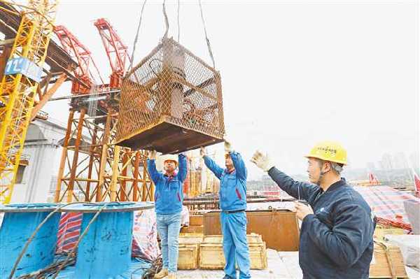 2月10日,記者在觀音峽嘉陵江特大橋施工現(xiàn)場看到,橋梁主墩已建設完畢,工人正在高聳的橋梁主墩上進行混凝土塊施工。中交一公局集團重慶渝武高速項目二分部黨支部書記彭成東介紹,大橋于2021年1月正式開工建設,為了不誤工期,施工方趕在2021年汛期到來前,提前完成了主墩出水施工任務。按照目前的進度,觀音峽嘉陵江特大橋有望今年底合龍,比預計工期提前一年。