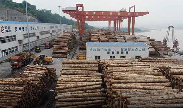 佛耳巖碼頭木材裝卸作業(yè)。重慶航發(fā)集團(tuán) 供圖
