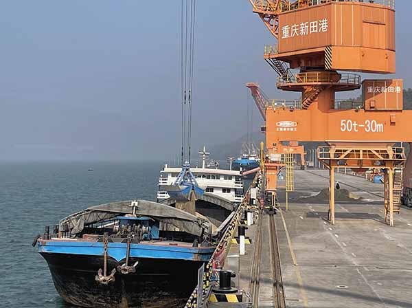新田港開展礦石裝卸作業(yè)。重慶航發(fā)集團(tuán) 供圖