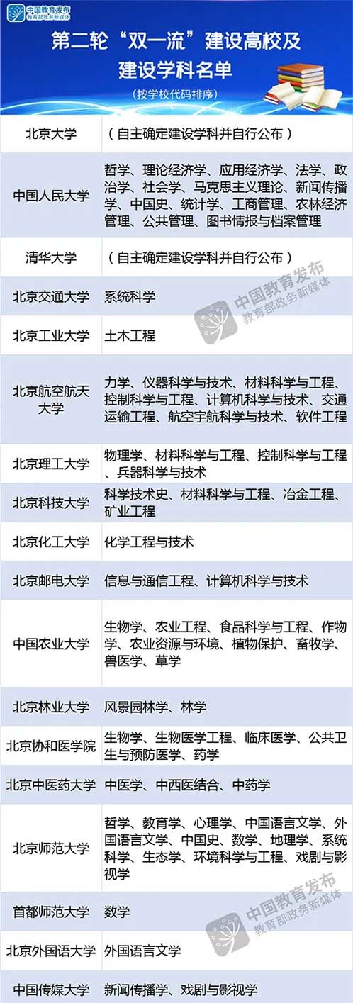 第二輪“雙一流”建設(shè)高校及建設(shè)學(xué)科名單(部分截圖)