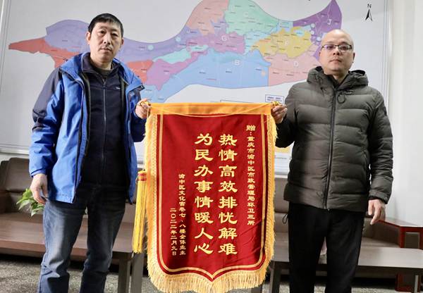 王勇(右)和聶世明(左)收到錦旗。胥世鵬攝