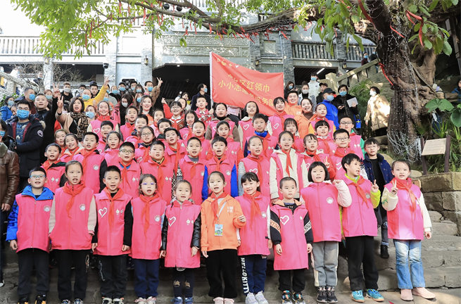 當(dāng)天,團(tuán)渝中區(qū)委、渝中區(qū)少工委在十八梯風(fēng)貌區(qū)在小志愿者啟動會上為中隊(duì)授旗,全體小志愿者作集體宣誓。啟動儀式后,小志愿者們走進(jìn)十八梯傳統(tǒng)風(fēng)貌區(qū)的七街六巷,完成挑戰(zhàn)打卡任務(wù),進(jìn)一步熟悉十八梯特色景點(diǎn),為服務(wù)游客做好準(zhǔn)備。