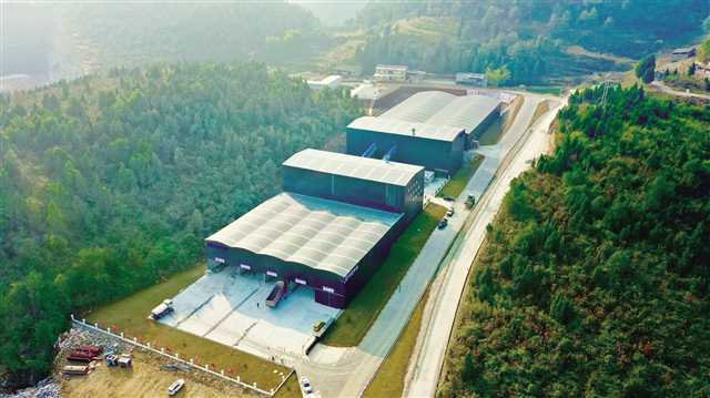 在正在建設(shè)中的水江隧道出口附近,一排灰綠色的鋼結(jié)構(gòu)廠房矗立在兩座山體之間,廠房因地勢(shì)而建,遠(yuǎn)遠(yuǎn)望去,同周邊的山色融為一體。其中兩座廠房之間,5根藍(lán)綠色密封傳送道交錯(cuò)著,呈“X”狀連接著廠房,整個(gè)園區(qū)就像是一座濃郁工業(yè)風(fēng)的公園。