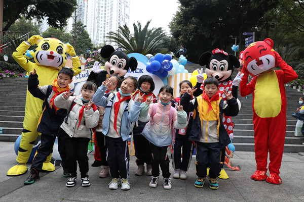 玩偶迎接學生返校。葉澤陽攝