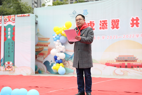 在精彩的節(jié)目展示后,校長陳坤致辭。他希望同學們在虎年里,要有氣吞萬里的勇氣,發(fā)揚女足敢拼敢闖永不服輸?shù)木,用努力書寫自己的人生。他為孩子們送上“新春、健康、勞動、感恩、智慧”的新年“五虎”,其中“勞動虎”旨在激勵同學們在“雙減”和“五項管理”的背景下,要有生龍活虎的干勁,傾九牛二虎之力,練就技壓群雄的實力。