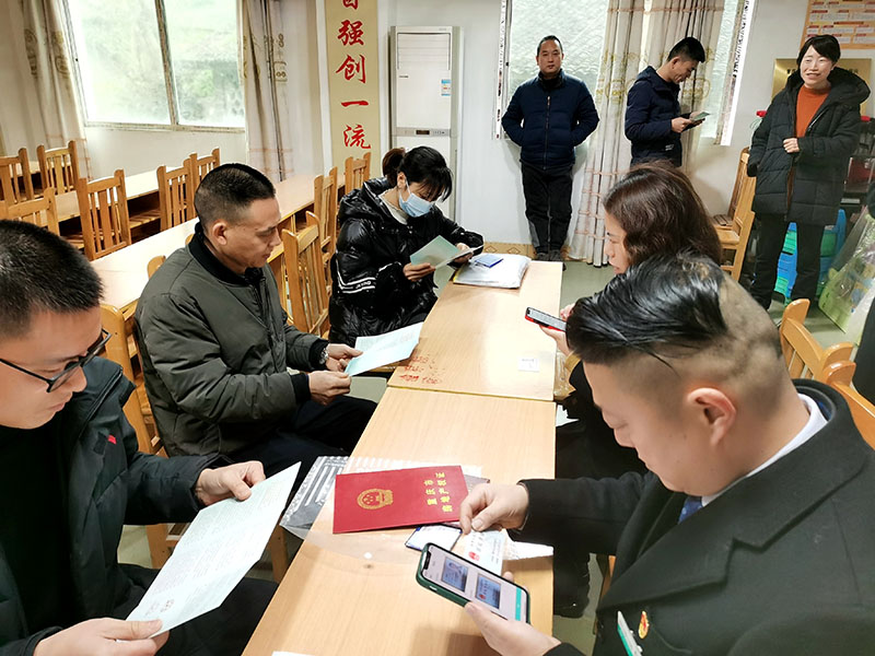 農(nóng)行工作人員在巴南姜家鎮(zhèn)白云山村宣傳減費(fèi)讓利惠民政策。農(nóng)行重慶市分行供圖