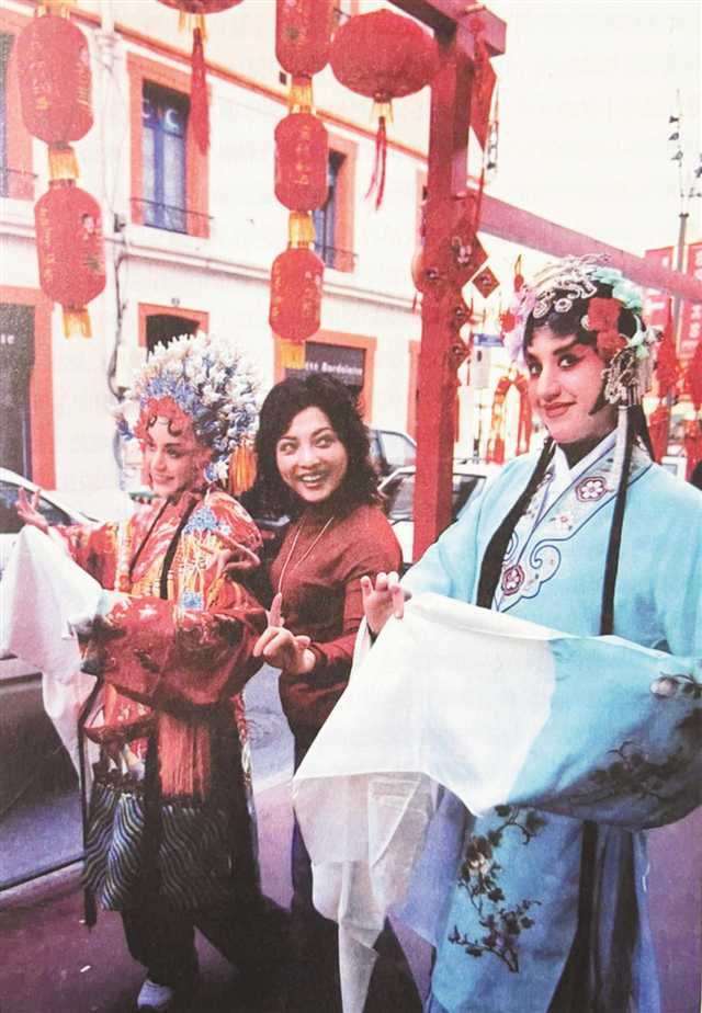 在法國圖盧茲市舉行“中法文化交流年”上,沈鐵梅(中)教外國友人表演。(本版圖片除署名外由重慶市川劇院提供)
