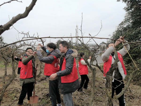 志愿者們身穿紅馬甲,在當(dāng)?shù)刎?fù)責(zé)人的帶領(lǐng)下,參觀梨膏加工廠,了解石坪村集體經(jīng)濟(jì)發(fā)展。并深入林間地頭清除梨樹雜枝、便道雜草,為三月份梨花節(jié)的盛開盡心出力!巴ㄟ^這次鄉(xiāng)村實踐不僅學(xué)習(xí)到了梨樹栽種技術(shù),也帶動了更多的青年志愿者參與進(jìn)來,為鄉(xiāng)村振興貢獻(xiàn)自己的力量!眮碜灾薪ǘ珠L江大保護(hù)綦江項目的青年志愿者高浩說。
