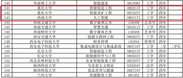 新增審批本科專業(yè)名單。華龍網(wǎng)-新重慶客戶端 發(fā)