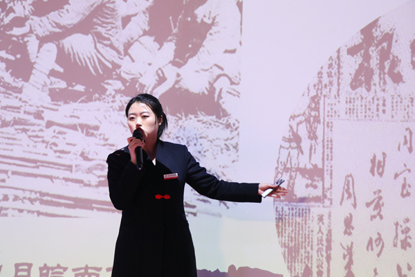 “‘三軍可以?shī)Z帥,匹夫不可奪志’是葉挺同志的座右銘,更貫穿了他的戎馬歲月!痹谥黝}黨日活動(dòng)現(xiàn)場(chǎng),紅巖魂陳列館優(yōu)秀講解員馮祝君,講解了紅巖革命烈士葉挺的故事。