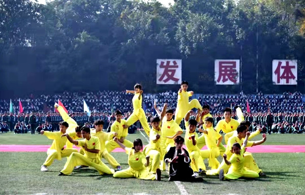 運(yùn)動(dòng)會(huì)開幕式的武術(shù)表演。江北中學(xué)供圖